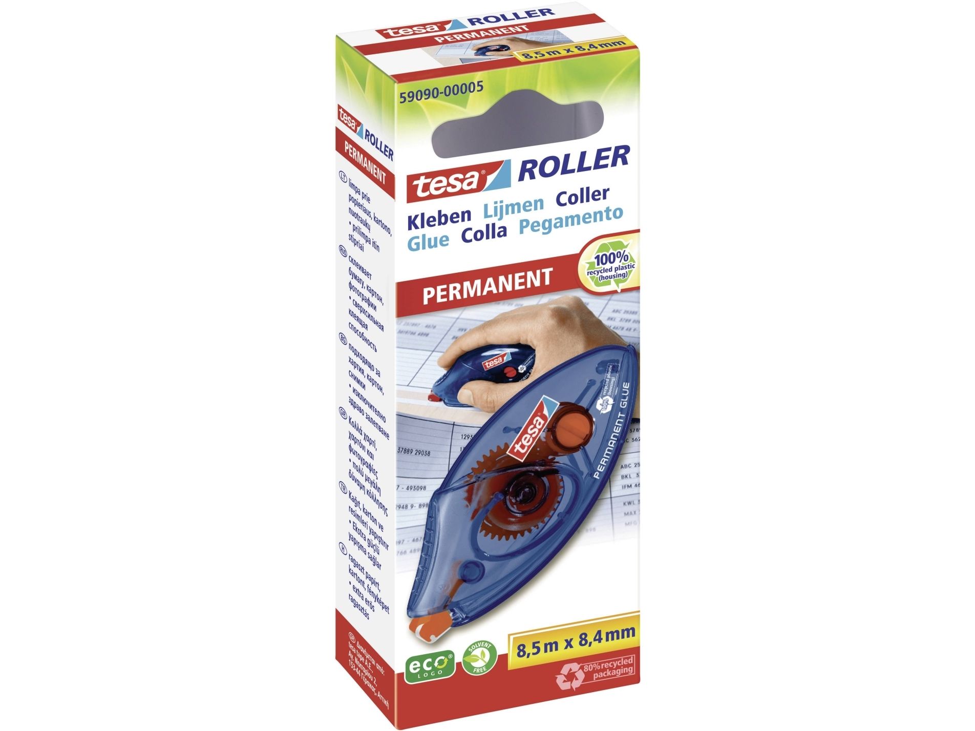 tesa adhesive roller PERMANENT GLUE, disposable, permanent, 8.4mm x 8.5m, 1 pc (59090)