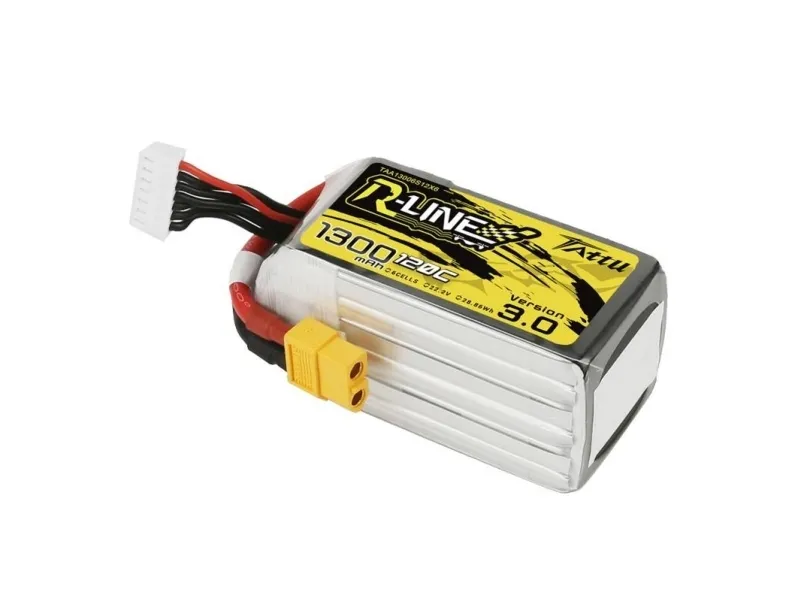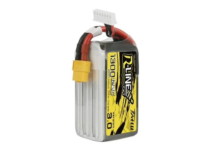 Tattu R-Line Version 3.0 1300mAh 22.2V 120C 6S1P LiPo battery pack is the updated version of R-Line series in 2019. With More Punch, Lower Internal Resistance and Less weight, Tattu R-line V3 definitely dominate all your races.
