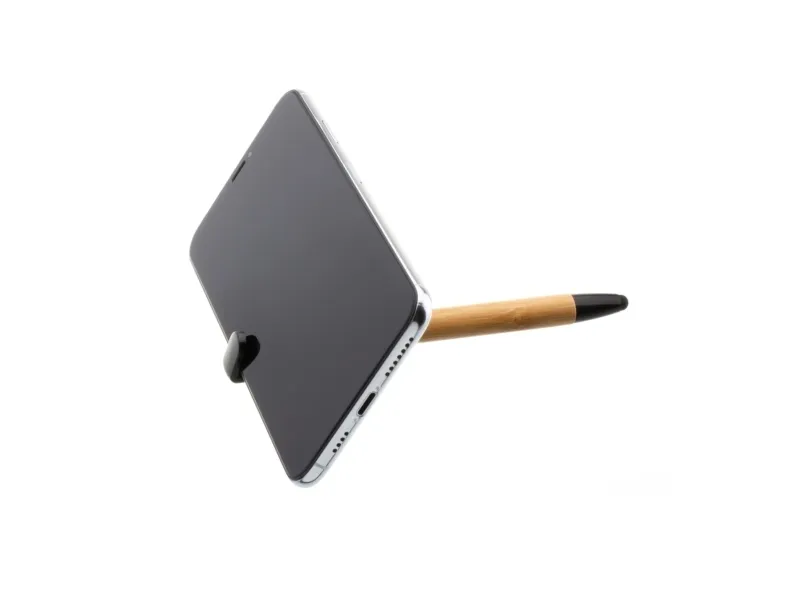 Indbygget skrivestift, built-in phone/tablet stand, antibacterial coating, rubber tip