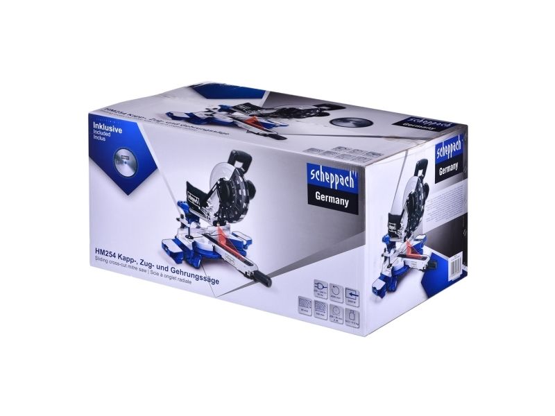 Die Kapp- Zugsäge scheppach ?HM254 ist ideal für den anspruchsvollen Einsatz in der hobby-Werkstatt. mit der stabilen Doppelsäulenführung liefert sie vielfältige und exakte kapp- und gehrungsschnitte in hart- und Weichholz, ebenso wie bei allen gängigen Kunststoffen.