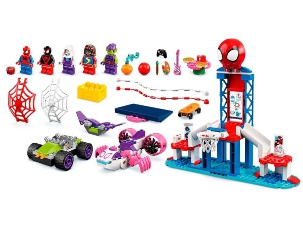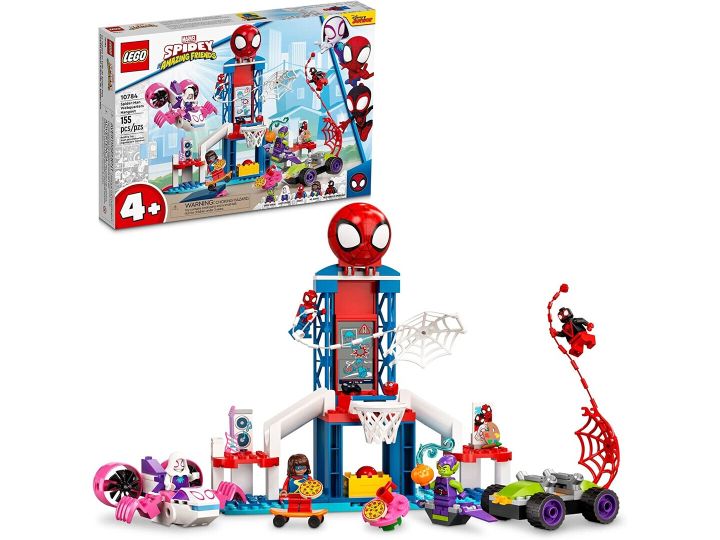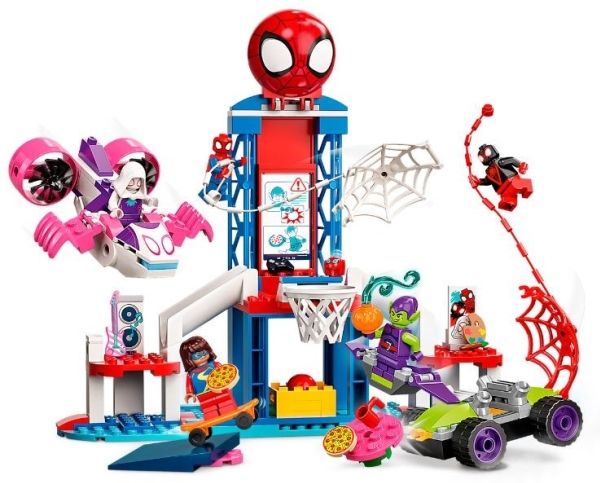 Spider-Man set for creative play – Kids can shoot hoops with Spider-Man, dance with Ghost-Spider, make art with Miles Morales, play video games with Ms. Marvel, or trap Goblin in a buildable web
