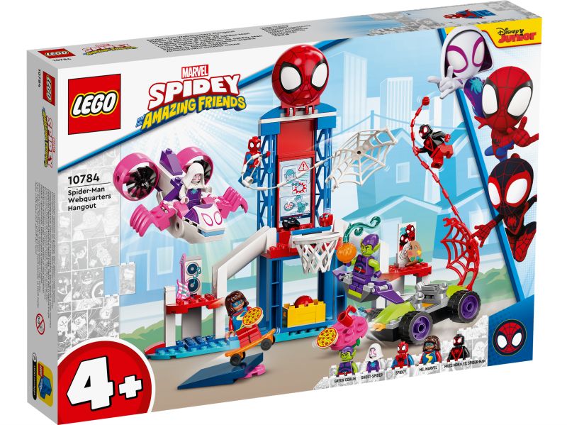 Even web slingers need to unwind! Help little builders aged 4 and up make the ultimate hangout HQ with the LEGO® Marvel Spidey And His Amazing Friends Spider-Man Webquarters Hangout (10784) construction toy. Kids can swoop in on the Ghost Copter and join the gang shooting hoops, skateboarding, gaming, dancing and making art. When Green Goblin crashes the party, Spider-Man can catch him in a web. This collectible building toy brings to life the fun camaraderie of the Disney+ TV show and will delight little Super Heroes who love LEGO Marvel gifts and minifigures.