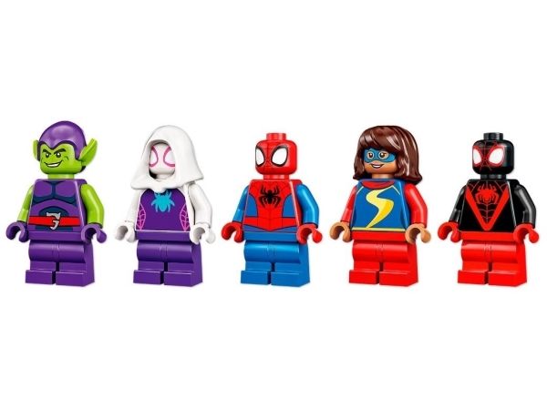 A star cast of Super Heroes – Comes with Spider-Man, Ghost-Spider, Miles Morales, Ms. Marvel, and super villain Green Goblin minifigures, plus Trace-E, the Ghost Copter and a 2-in1 Goblin car