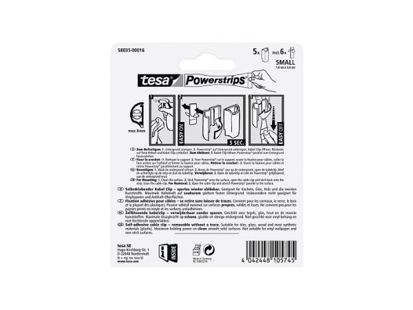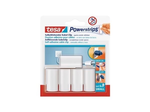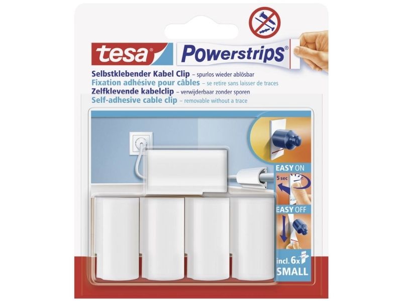 Cables keep your electric devices running, but nobody wants to see them hanging around or even stumble over them. tesa Powerstrips® self-adhesive cable clips is a versatile plastic cable manager help you to organize cables unobtrusively in the home and keep things tidy under the office desk. These wire ties stick to just about any flat surface and come off easily without leaving traces. They are also reusable and can be attached again and again by simply using a new tesa Powerstrips® Small. Put an end to all that cable clutter by routing your cables neatly and unobtrusively.