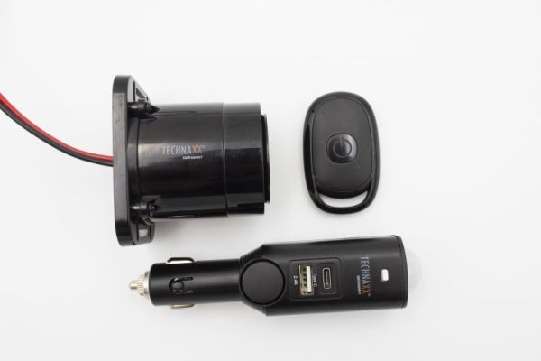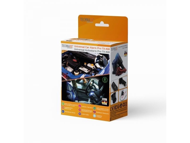 Technaxx TX-168. Product type: Car alarm system, Connectivity technology: Wired & Wireless, Housing colour: Black. Power source type: Battery, Cigar lighter, Input voltage: 12 - 24 V. Package type: Box