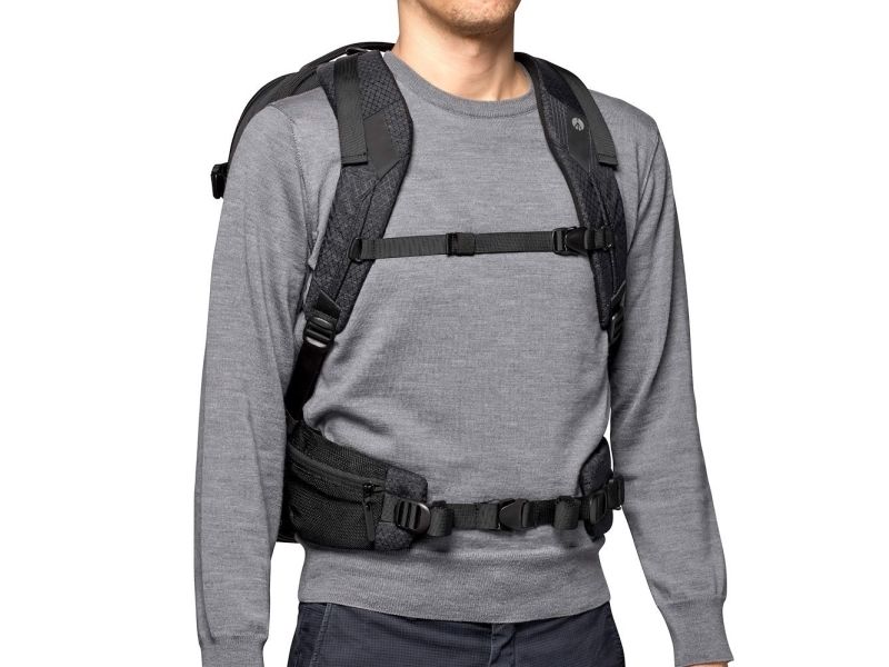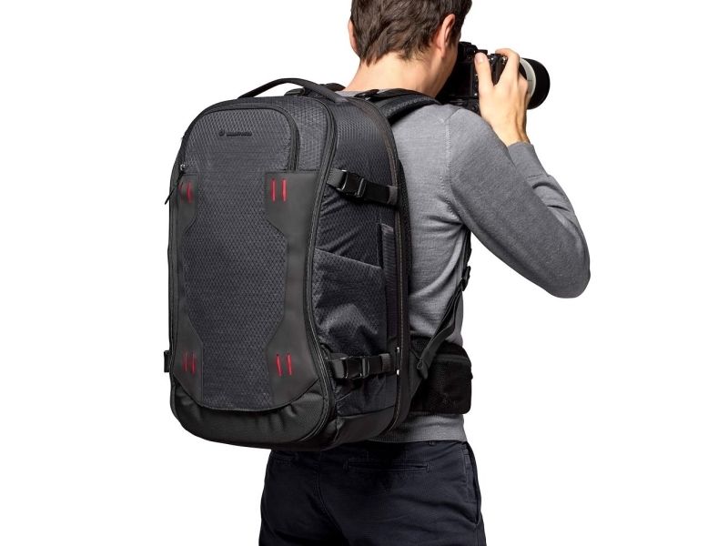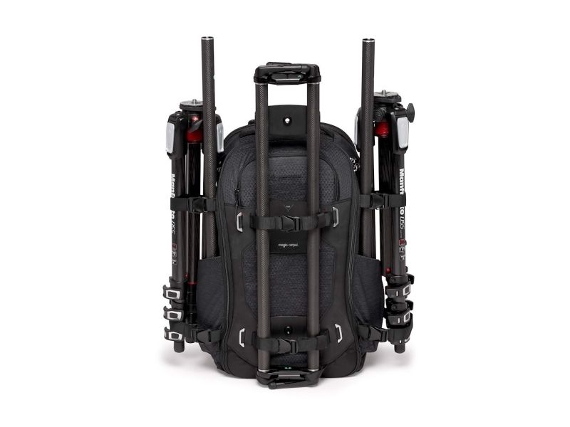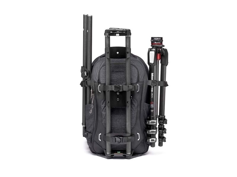 The Videndum Manfrotto Pro Light Flexloader L backpack is designed for photography enthusiasts who want to carry their gear safely and conveniently. This versatile backpack is made from durable nylon and synthetic fabric, ensuring longevity while providing protection for various equipment including digital cameras, camcorders, notebooks, and more. With a 26.5-liter capacity, it offers space for up to 8 lenses, a tablet, a gimbal, and has a dedicated compartment for a tripod. The backpack features a water-repellent exterior, shock protection, and UV-proof materials, providing peace of mind during travels in unpredictable weather. Additionally, the ventilated EVA mesh panel at the back enhances comfort during extended use, making it easier to carry gear over longer distances.