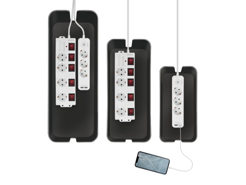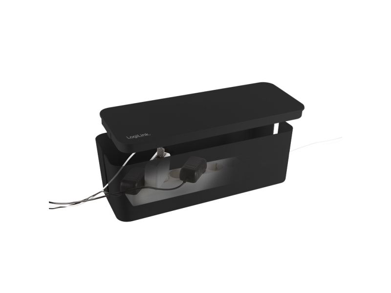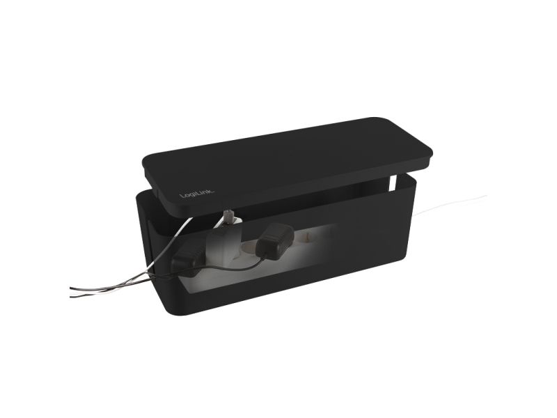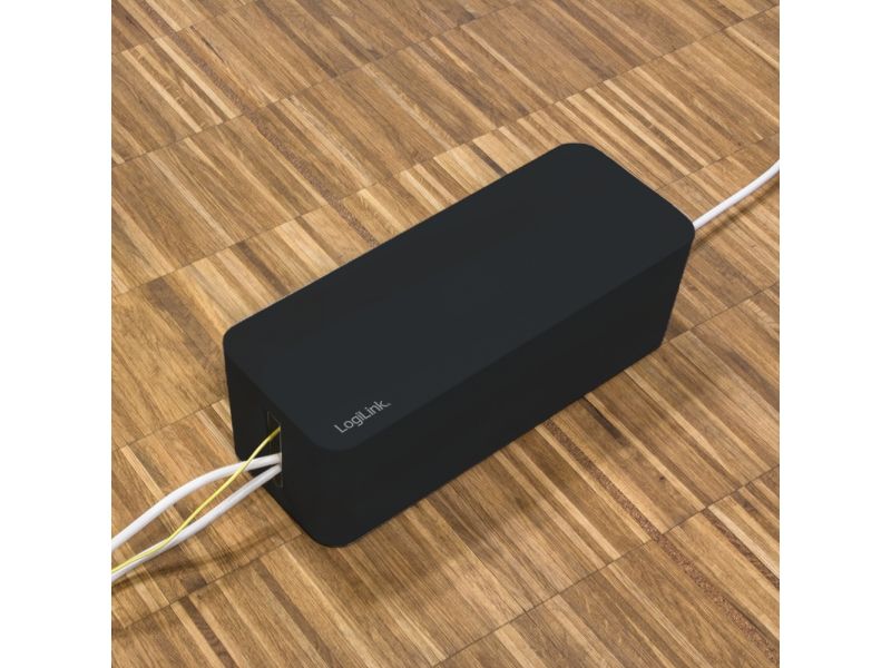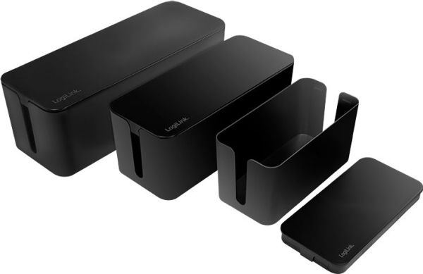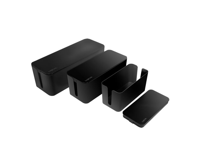 LogiLink KAB0077. Type: Cable box, Purpose: Universal, Product colour: Black. Width: 157 mm, Depth: 407 mm, Height: 134 mm. Quantity per pack: 3 pc(s)
