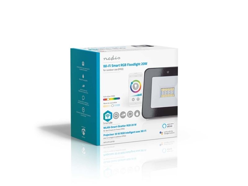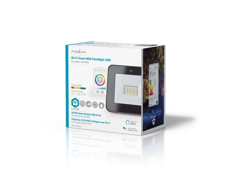 Discover the Nedis floodlight, a versatile and efficient lighting solution designed for the modern home. This floodlight features built-in LED technology and is app-controlled, allowing for easy management through the Smart Life application. With the ability to set lighting schedules, you can ensure your outdoor areas are well-lit exactly when needed. The floodlight is suitable for outdoor use, boasting an IP65 compliance standard, making it resistant to dust and water. It offers a broad color temperature range from 3000 to 6500 K, ensuring the right light for every moment. Whether you're looking to enhance security or create the perfect ambiance for your outdoor gatherings, this floodlight is designed to meet your needs. Its energy efficiency is notable, with a class F rating, yet it provides a powerful luminous output of 1600 lumens. Simplify your outdoor lighting with this smart, durable, and efficient floodlight, designed to illuminate your space while saving on energy costs.