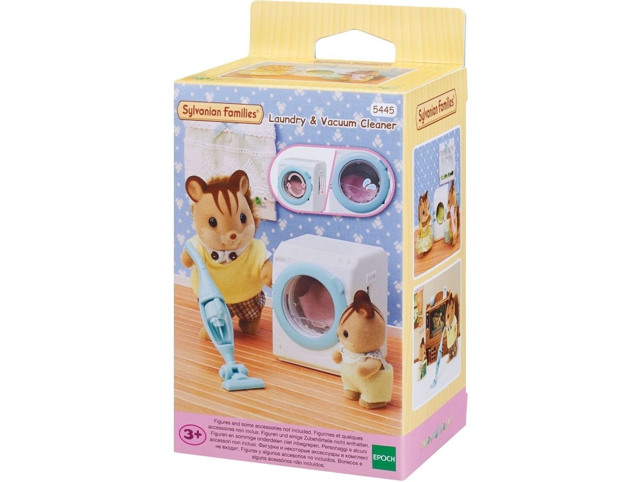 *The drum inside the washing machine can be spun around *Inside has the appearance of flowing water *The hand-held vacuum can be removed from the main unit *Sylvanian Families' miniature dollhouses, playsets and figures are timeless and classic high-quality toys. *Suitable for ages three years and above. • play vacuum cleaner and washing machine • with accessories
