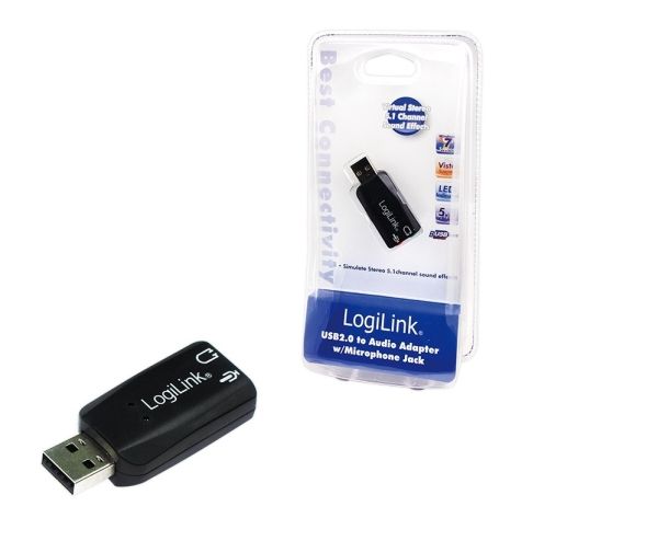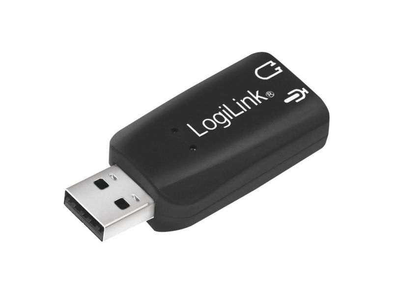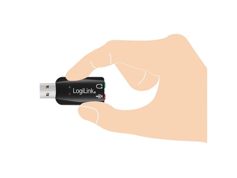 Die LogiLink USB Soundkarte bietet eine einfache Möglichkeit Lautsprecher, Mikrofon, Headset oder IP Telefon mit Ihrem PC zu verbinden. Sie wird bei Bedarf mit dem USB Port Ihres Computers verbunden und unterstützt Plug and Play. Mittels integriertem 3D Sound Effekten simuliert der Adapter einen Surround Sound Klang. Der Status der angeschlossenen Geräte kann mittels LED Kontrollleuchten überwacht werden. - Audio Adapter für den USB Port - Anschluss: USB 2.0 Typ A male - Ausgang Mikrofon: 3,5 mm female - Ausgang Lautsprecher: 3,5 mm female - LED Statusanzeige, Stromversorgung über USB - Simuliert 5.1 Surround Sound Effekte - Virtual Speaker Shifter - Unterstützt Plug & Play - Farbe: schwarz