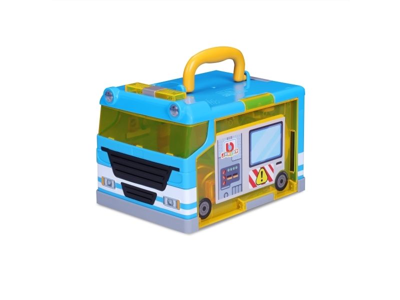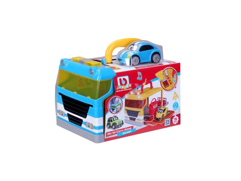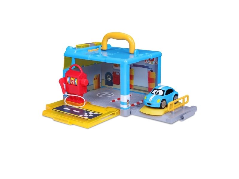 With complete service station inside. This Carry Along Garage has light and sounds, allowing kids to transport their favorite vehicles in style. Open up the garage and find a service station complete with gas pump and vehicle lift inside - all of which enhances kids' play experience. From 18 months.
