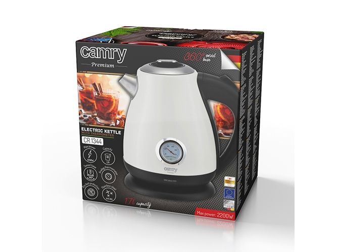 Camry | Kettle with a thermometer | CR 1344 | Electric | 2200 W | 1.7 L | Stainless steel | 360° rotational base | White