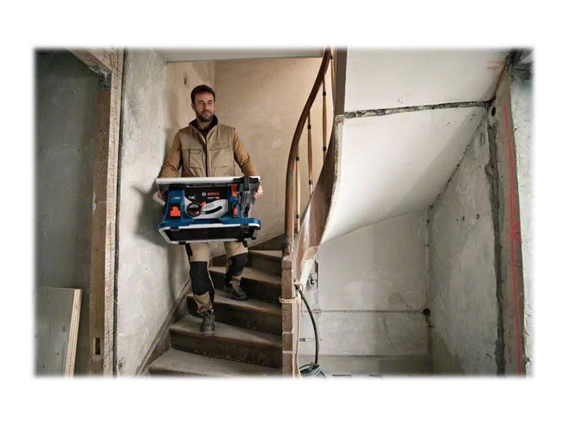 GTS 18V-216 Professional: Further information Product Highlights The compact GTS 18V-216 Professional BITURBO table saw with 70 mm cutting height combines high performance with full mobility. Its brushless high-performance motor in combination with our ProCORE18V batteries ensures mobility at work. Offering optimised design and 70 mm cutting height as well as 635 mm rip capacity, this saw's high cutting capacity covers all main applications. Easy and safe transport is guaranteed due to lightweight design and ergonomic handles, as well as protective on-board storage of fences and blade guards. Equipment & Application This saw is ideal for cutting wood and laminated panel. It can be mounted on Bosch stands GTA 560 as well as GTA 60 W. The table saw is compatible with all Bosch Professional 18V batteries and chargers (Professional 18V System), for maximum power use ProCORE18V ≥ 5.5 Ah.” Additional Information The GTS 18V-216 Professional has a generous saw blade diameter of 216 mm, weights 21.6 kg with battery, and features Soft Start as well as restart protection.Bosch GTS 18V-216 Professional. Sound pressure level: 81 dB, Sound power level: 94 dB. Weight: 21.6 kg. Package width: 662 mm, Package depth: 825 mm, Package height: 417 mm