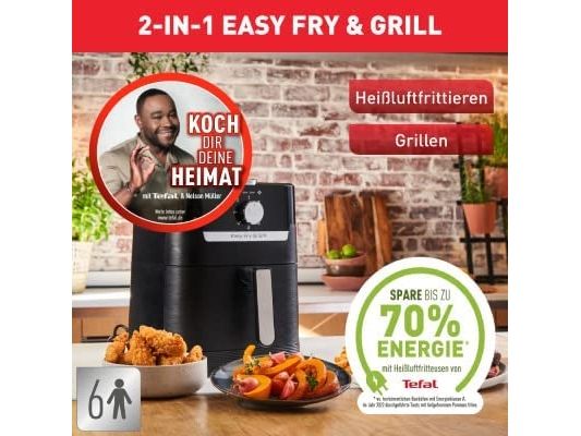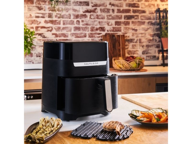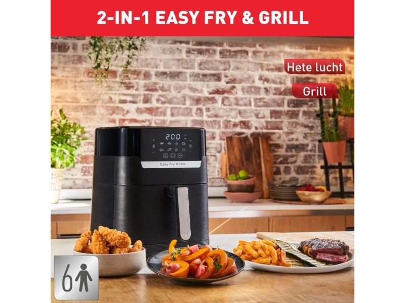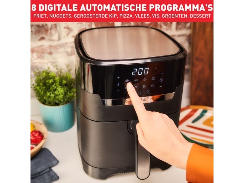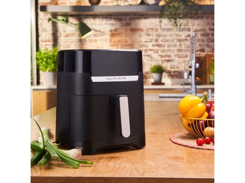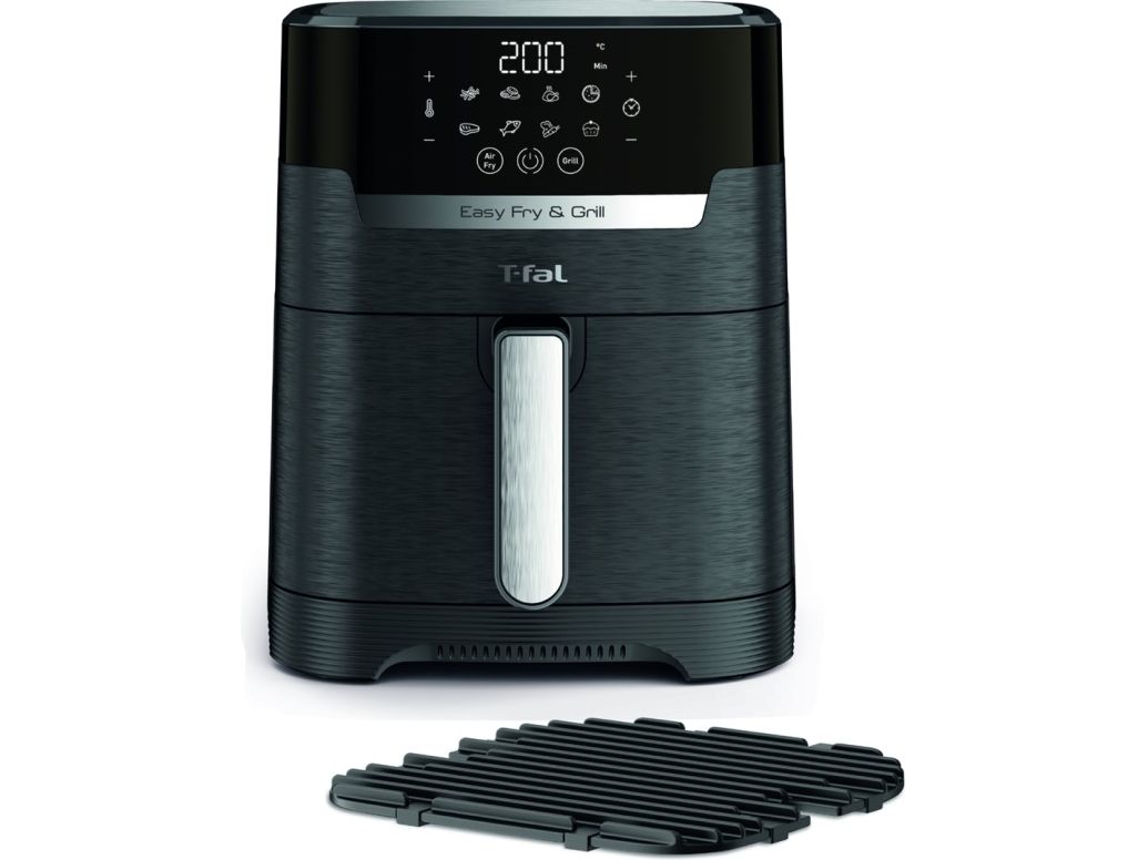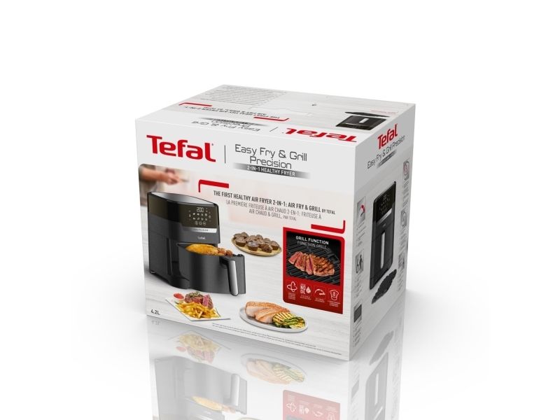Tefal Easy Fry & Grill EY5058. Product type: Hot air fryer, Capacity: 4.2 L, Temperature (min): 80 °C. Construction type: Single, Product colour: Black, Control type: Touch. Power: 1550 W. Width: 270 mm, Depth: 361 mm, Height: 324 mm. Package width: 314 mm, Package depth: 398 mm, Package height: 370 mm