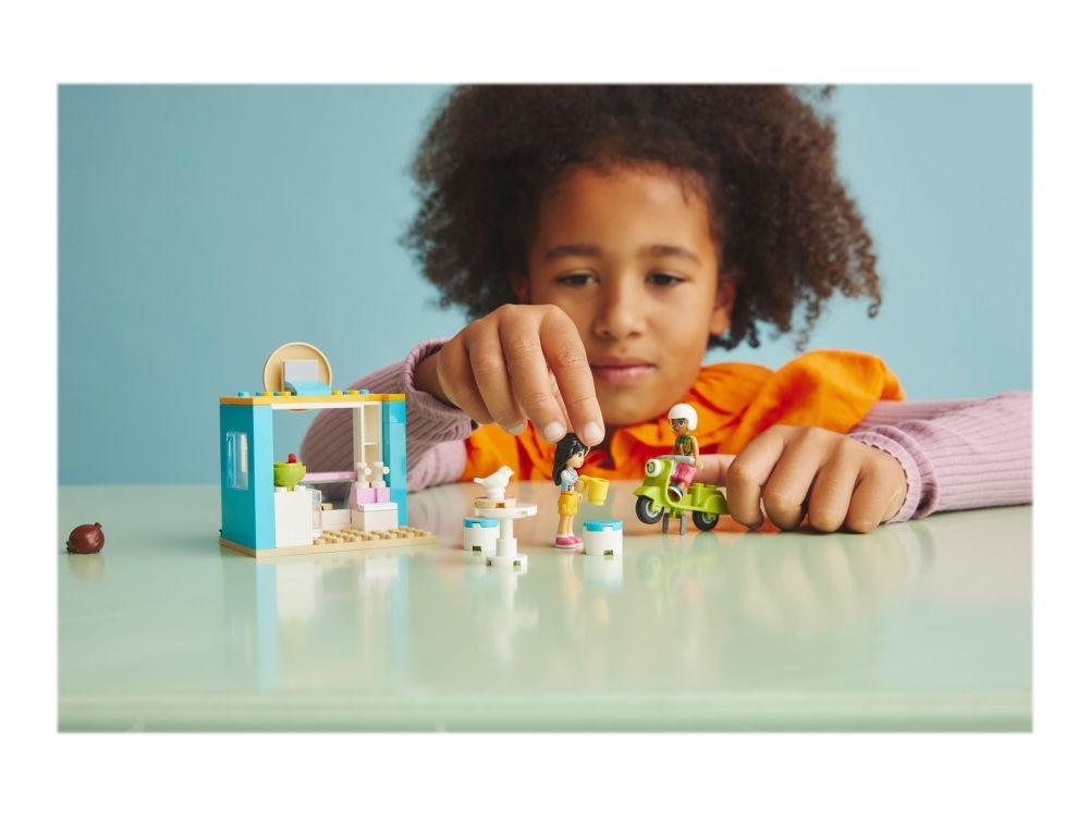 Includes 2 mini-dolls – The toy set comes with LEGO® Friends characters Liann and Leo, a drive-through window, plus accessories including a scooter, bird, doughnuts, juice, money, table and 2 chairs