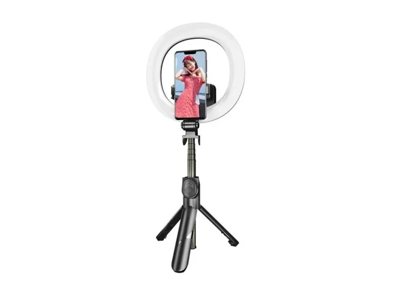 The Puluz tripod with LED ring light will perfectly illuminate your face while recording videos or taking photos. You can also turn the tripod into a selfie stick and conveniently take photos with the Bluetooth remote control. With 3 lighting modes to choose from with adjustable brightness, you can easily adjust the light perfectly to your requirements. The device is extremely lightweight, and thanks to its foldable and portable design, you can take it with you anywhere.
