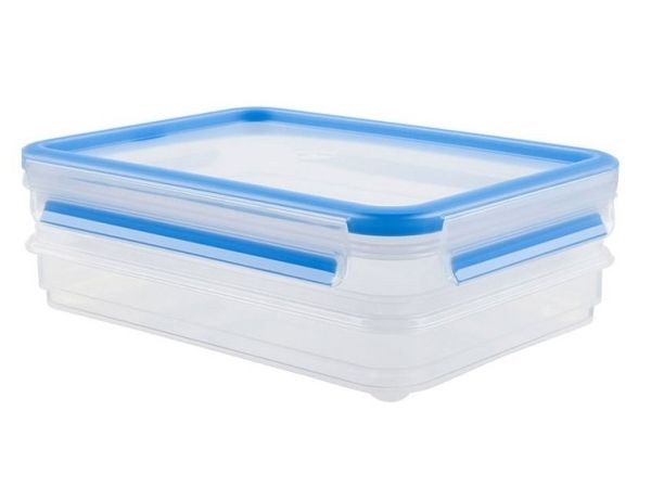 Emsa CLIP & CLOSE cold cuts box set 1.0 liter, 4-piece, can (transparent/blue, rectangular)