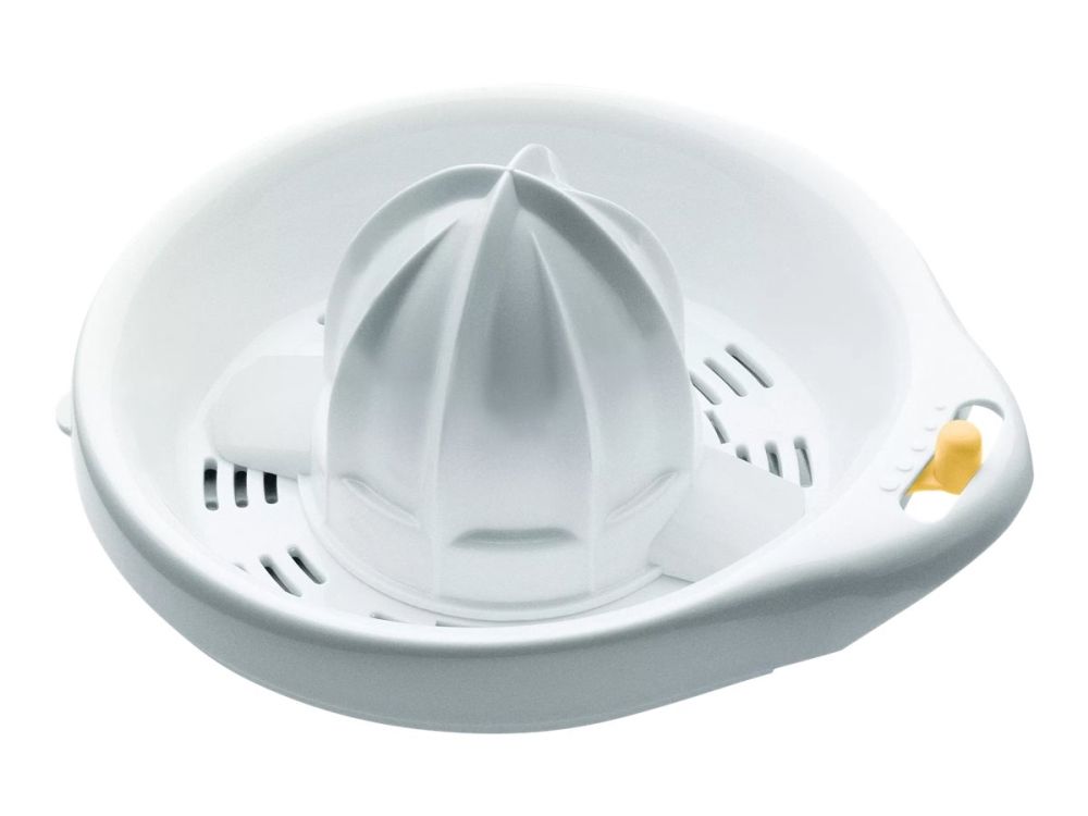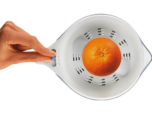 A bright and colorful citrus press with an adjustable pulp selector to adjust the amount of pulp in your juice to your personal taste.