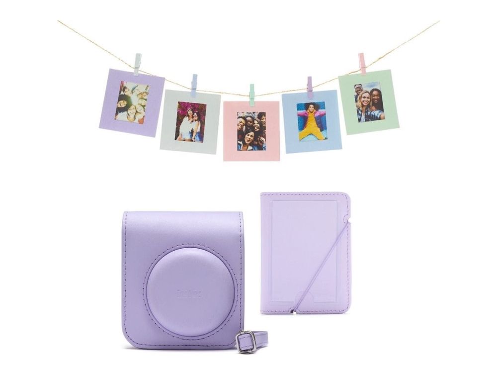 The Fujifilm accessory kit is designed for instant cameras, offering essential items to enhance your photography experience. This kit includes a variety of useful accessories such as a carrying case, a foto album, a photo frame, hanging twine, and matching pegs, all contributing to a more organized and stylish way to store and display your cherished memories. With an adjustable strap, transporting your instant camera has never been easier, making it perfect for outings and events.