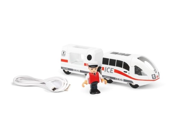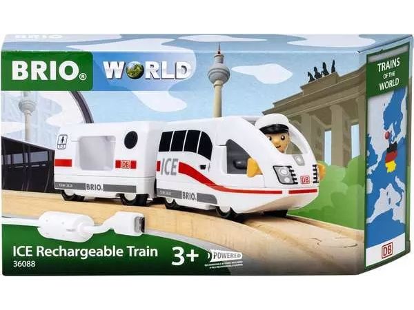 Explore Germany over and over again on board the 36088 ICE Rechargeable Train – part of the Trains of the World series. This high-speed train features a battery-powered engine with space for the driver, a passenger carriage and a rechargeable battery function. Known for their speed, efficiency and comfort, the “InterCity Express” trains first came into service in 1991. Explore iconic railway routes and famous trains from all around the world with the Trains of World series.