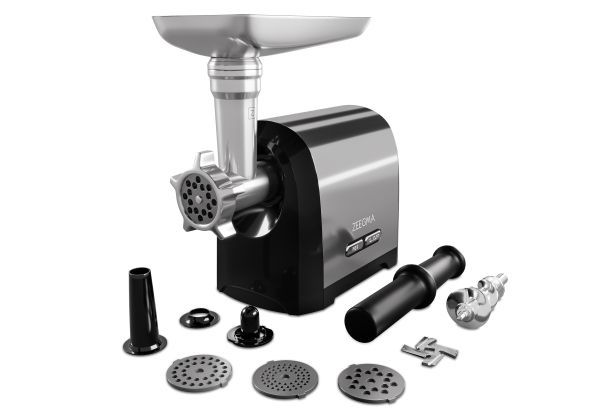 Zeegma Molen Chef is a reliable and functional electric meat grinder that can also be used for vegetable chopping. Thanks to its versatility and a large set of accessories, Molen Chef lets you prepare a whole range of various meals.High-efficiency grinding due to high motor power (1200 W)Case made of the highest quality materialsSet of 3 cutting plates of different sizes (3/5/7 mm)Set of 3 chopping barrels for vegetablesAnti-slip legs ensuring stability of the deviceEasy decongestion supported by reverse gearUniversal design