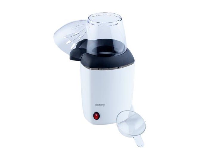 The popcorn maker is a great choice for those who adore something crispy accompanying a movie night and, at the same time, would prefer avoiding having to deep fry the treats. Thanks to the technology applied in the CR4458 popcorn maker, that bases on hot air, popcorn is being prepared in a much healthier way without any oil or fat. To make one portion, it takes only 2,5 minutes, which means you can use the commercial breaks in TV or just pause the movie for few minutes. If you have unexpected guests coming – you can also prepare a snack quickly. This easy-to-use device provides you with a healthier, less fat and delicious popcorn to accompany your evenings. Thanks to the transparent lid you can even watch the corn pop – of course only to make sure when the snack will be ready.Camry Premium CR 4458. Product colour: Black, White, Preparation time: 2.5 min. Power: 1200 W, AC input voltage: 220-240 V, AC input frequency: 50 Hz. Weight: 800 g