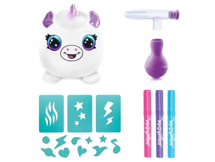 Comes in 3 styles: Koala, unicorn and narwhale. Color your plush! Design and customize your own squishy plush. You can use the stencils to color in trendy icons or get creative and freestyle. Simply stick the stencils on the plush, choose a color, and spray with the spray pump - and when you are ready for a new design, simply wash your plush and start decorating again. It all comes in a can that is reusable for storage. Collect all 3 styles, unicorn, koala and narwhale. From 6 years. The can contains: - 1 squishy plush - 1 spray pump - 4 markers - 1 pair of gloves - 70 reusable stick-on stencils - 1 instruction leaflet