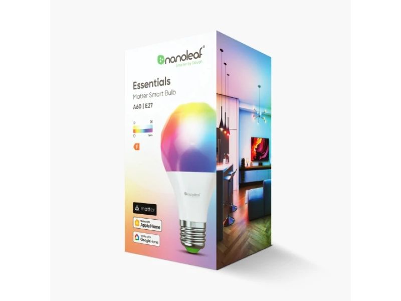 Enjoy bright whites and endless colours with this Thread and Matter-enabled smart colour changing LED Light Bulb that's simple to set up, and easy to control.Nanoleaf NF080B02-1A19E. Bulb power: 8.5 W, Fitting/cap type: E27, Luminous flux: 1100 lm, Bulb lifetime: 25000 h, Light colour: Multi