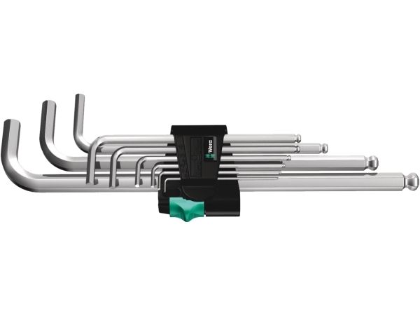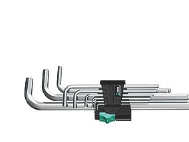 High quality L-key set for hexagonal socket screws in a practical clip fastener out of wear-resistant material, enabling secure storage of the L-keys as well as simple removal. L-keys with Hex-Plus profile: offers a larger contact surface within the screw head. This reduces the notching effects to a minimum and almost completely eliminates the risk of destroying the screw recess. The ball-end on the long arm allows for reliable working even in difficult installation situations. The precise chrome-plated design ensures high corrosion protection. The tools are quickly to hand thanks to the laser-engraved and thereby wear-resistant size markings on the L-keys.