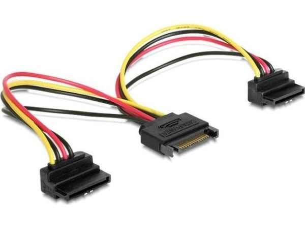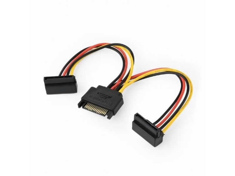 - SATA power supply splitter cable with single SATA male to 2 x SATA female connectors - 90 degree angled SATA output connectors