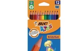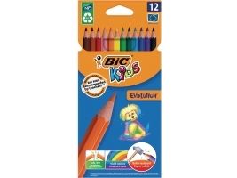 • Kartonæske med 12 farverige miljøvenlige farveblyanter fra BIC Kids produktserien • Intenst pigmenterede spidser er ultra holdbare, nemme at spidse og giver enestående dækning • Træfrie stifter af syntetisk harpiks, der modstår at blive tygget på og ikke splintrer, hvis de knækker • Stiftens ottekantede design sørger for et fast greb og hindrer dem i at rulle af bordet: perfekt til børn fra 5 år og opefter • BIC Kids Evolution ECOlutions farveblyanter er fremstillet af 55% genbrugsmaterialer og er tildelt økomærket NF Environment