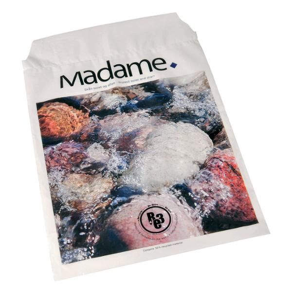 Madame bag white 5L - LDPE/RE3, with motif, 24.5x35cm 35my, with holes for holder, 100 pcs