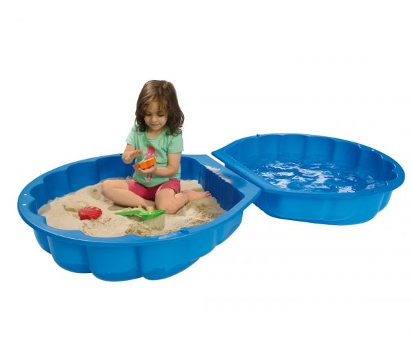 The BIG-Sand/Watershell is a sandpit and paddling pool all in one. The two-piece set is manufactured from high-quality plastic in the shape of a scallop shell. Guaranteed to be a big playtime hit with little sun worshippers. Each half of the scallop shell can be easily filled with sand or water and offers plenty of room for endless playtime fun. Let your garden be transformed into a stunning holiday resort! For storage during the winter or for transportation, the 2-piece sand and water shell can be easily cleaned and folded together, requiring very little storage space.