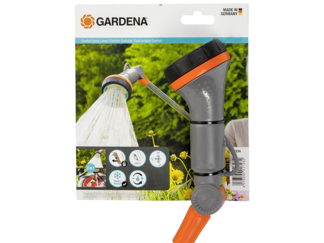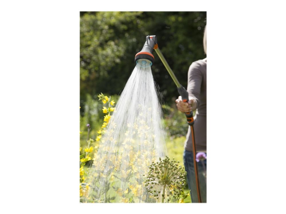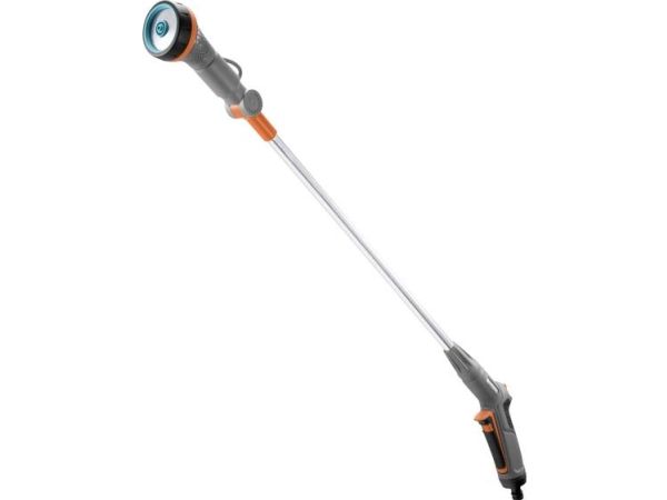Comfort Watering Wand for watering and cleaning tasks in hard-to-reach places - frost-proof. The Gardena Comfort Watering Wand is not only suitable for watering plants, but also for cleaning remote or hard-to-reach areas thanks to different spray patterns and the swivel head. The water flow can be continuously adjusted. The pulse trigger can also be locked to ensure a constant water flow. With integrated frost protection technology and practical hanging option.