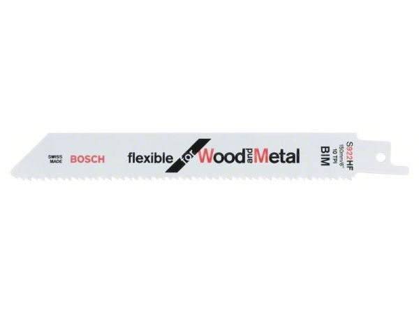 Details - Material BIM. - Tooth design side set, milled. - Tooth spacing [mm] / TPI 2,5 / 10. - Total length [mm] 150. - Thickness [mm] .9. - Areas of application Wood with nails/metal (<100 mm), sheet metals, pipes, aluminium profiles (3-12 mm), pallets. - Type S 922 HF.