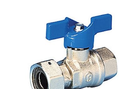 Pettinaroli 3/4" x 3/4" ball valve with union / socket, blue aluminium T-handle