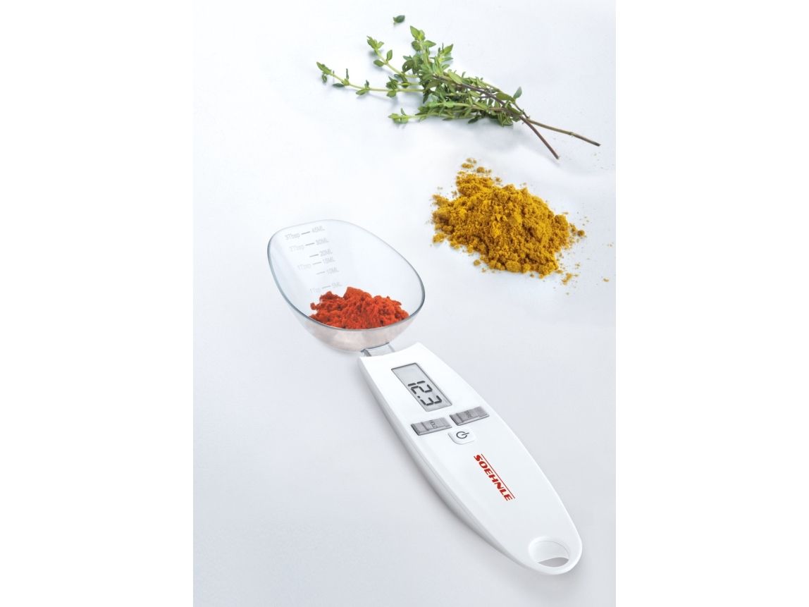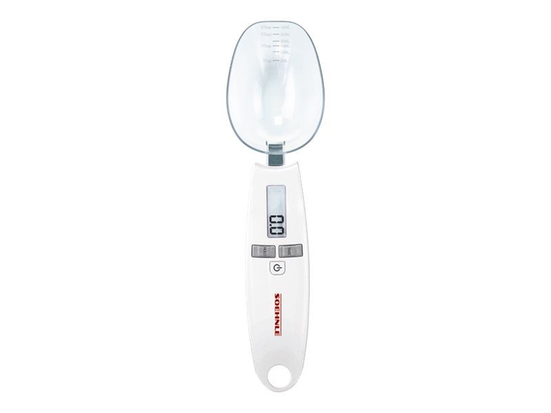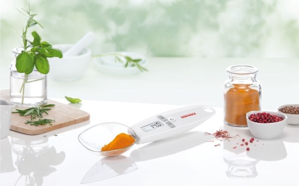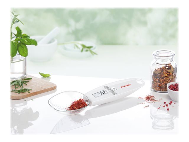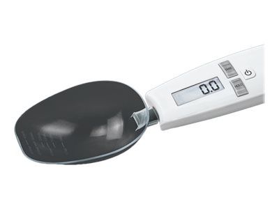 Who is not familiar with this? The smaller the quantities, the more difficult they are to weigh. No problem for Cooking Star. In increments to 0.1 g precise, this digital "spoon scale" precisely weighs miniscule amounts of solid and liquid ingredients. It offers a total load capacity of 500 g. With the convenient weighing spoon you can, for example, remove high-quality spices, herbs, or fine tea directly from the storage container and weigh them most precisely. The "hold" function displays the weight on the easy-to-read LCD screen. The spoon is removable and can easily be cleaned in the dishwasher. With convenient auto-off function and tare function.
