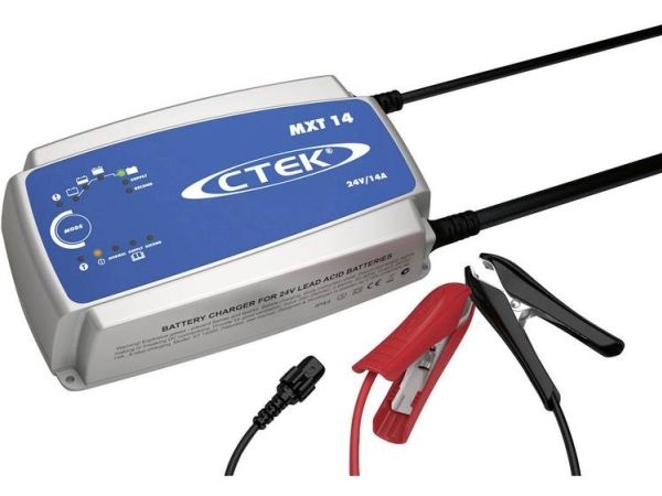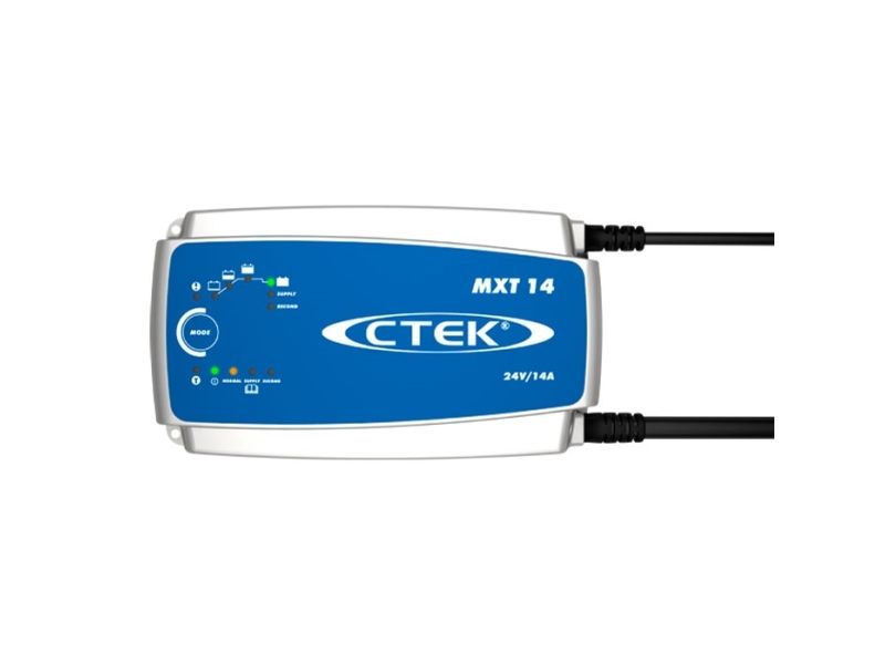 The MXT 14 is a fully automatic 8-step charger that delivers 14A to 24V batteries from 28–300Ah and is suitable for maintenance charging up to 500Ah. The charger is IP 44 classified (outdoor use), designed to protect vehicle electronics and non-sparking, reverse polarity protected and short-circuit proof. It is delivered with a 2-year warranty.