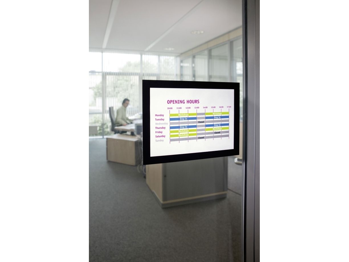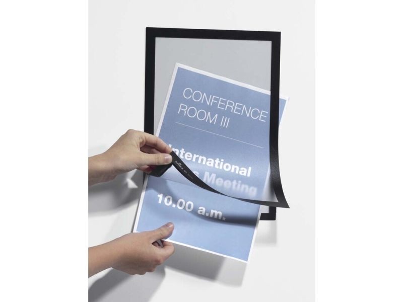 The professional and convenient way to display literature. Simply peel off the protective paper and apply the self adhesive back to any smooth, solid surface such as doors, windows, filing cabinets etc. The magnetic seal firmly holds literature in place and inserts are quick and easy to update. When applied to glass doors and windows, the information can be read from both sides. Ideal for displaying notices, signage, rotas in the office or at home.