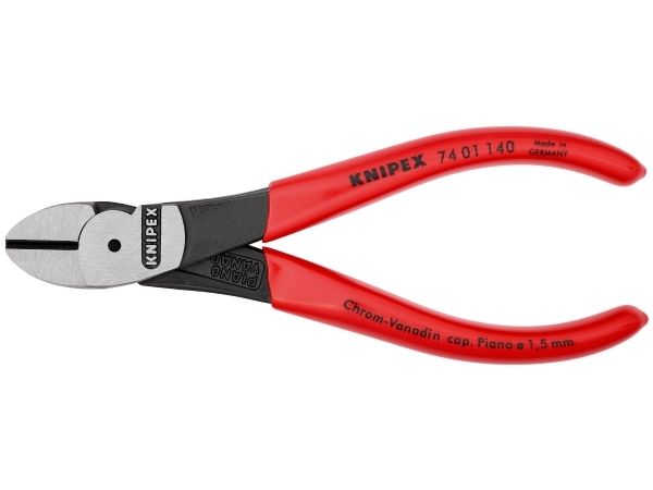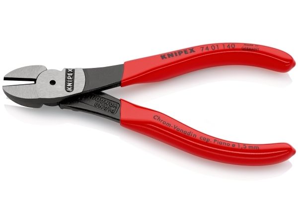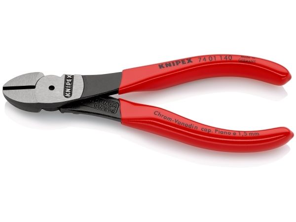 - for very tough, continuous use - high cutting performance with minimum effort due to optimum co-ordination of the cutting edge angle and transmission ratio - precision cutting edges additionally induction hardened (cutting edge hardness approx. 64 HRC), for all sorts of wire including piano wire - Chrome vanadium heavy-duty steel, forged, oil-hardened