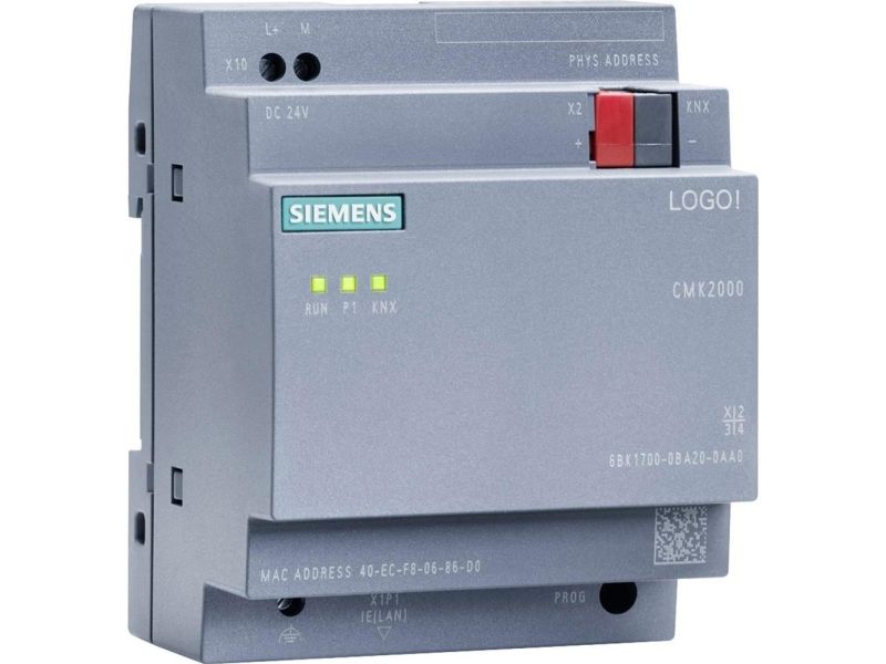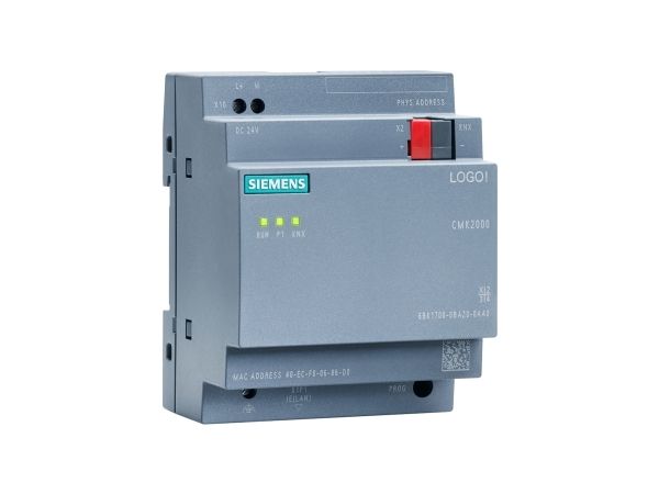 LOGO! CMK2000 Communication module for integrating the LOGO! 8 "in the building system bus KNX;" connection 24 V DC 0.04A 1x RJ45 port for Ethernet 50 communication objects time-of-day = synchronization Configuration/diagnostics via web interface