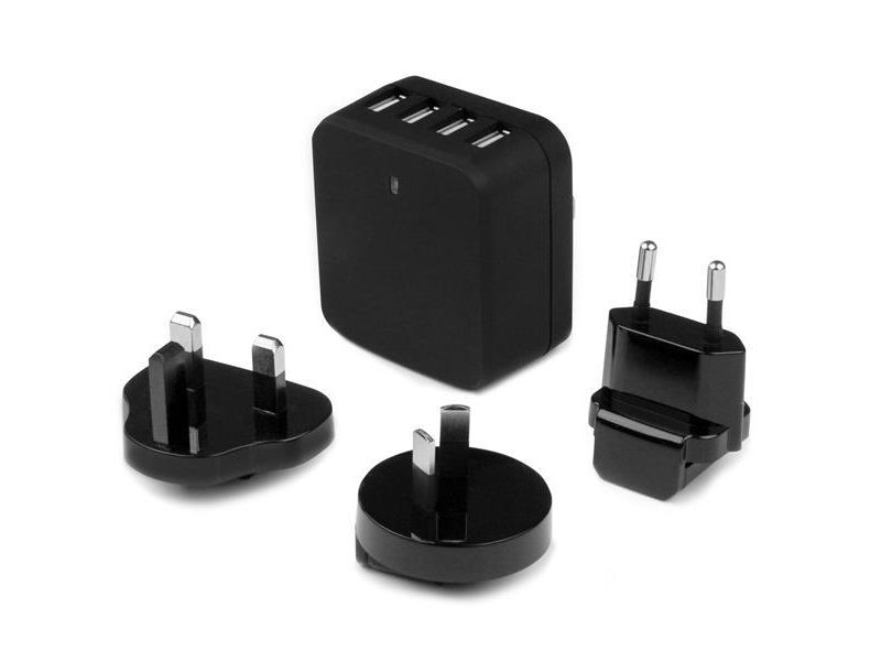 Startech 4-Port Travel USB Wall Charger - 34W/6.8A International Travel Adapter - Portable USB Charging Station (USB4PACBK) strømforsyningsadapter - USB - 34 Watt