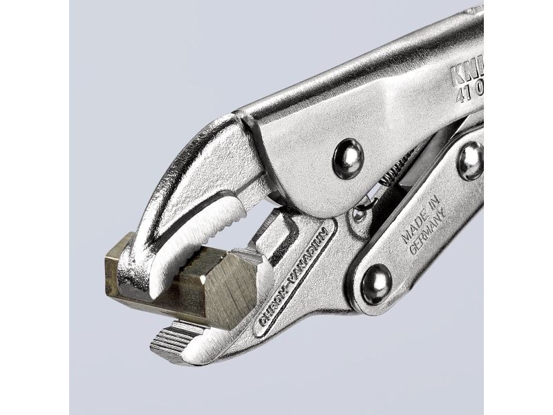 - hold round, profile and flat material securely - heavy duty model - with adjustment screw and release lever - one-hand operation - high clamping pressure due to toggle lever action - pliers body: rolled steel, high-strength - gripping jaws: chrome vanadium electric steel, forged