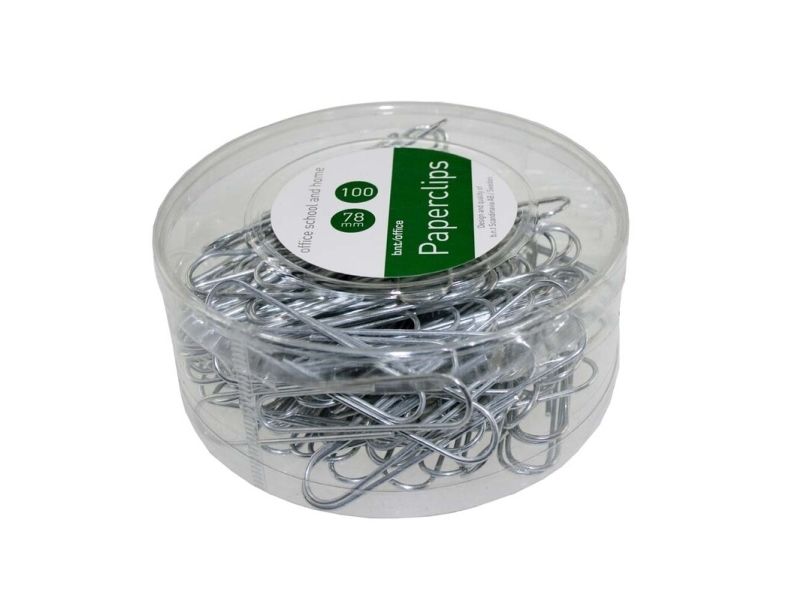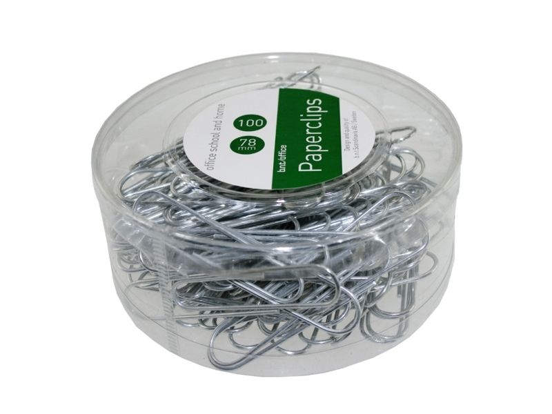 Paper clips 78 mm, 100 pack, silver