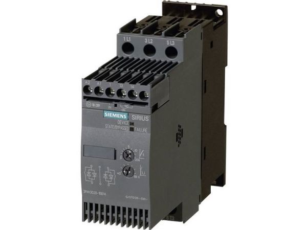 Siemens soft starter 3RW3017 (3RW3017-1BB14) 5.5 kW at 400 V / 3 kW at 230 V, rated current 12.5 A