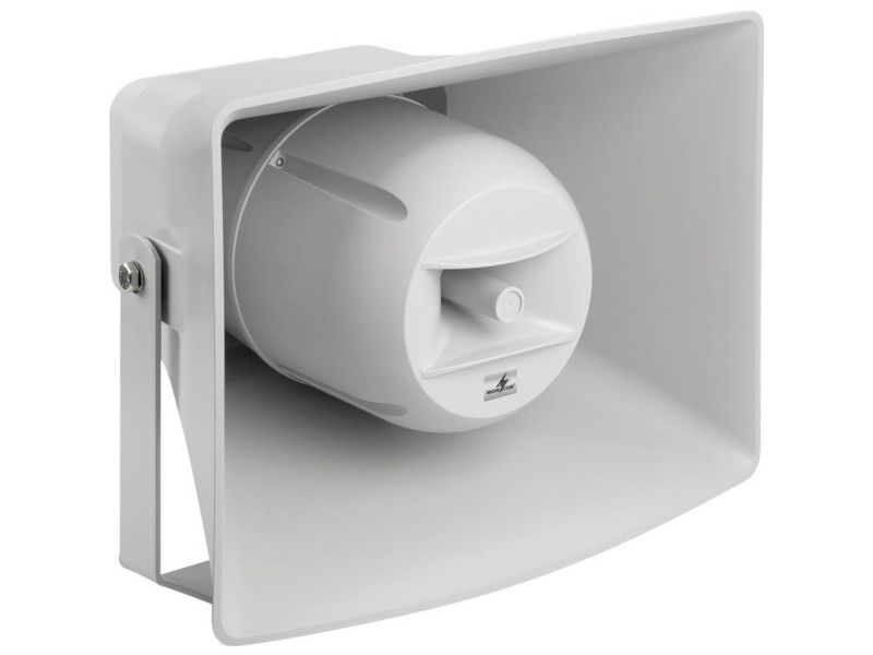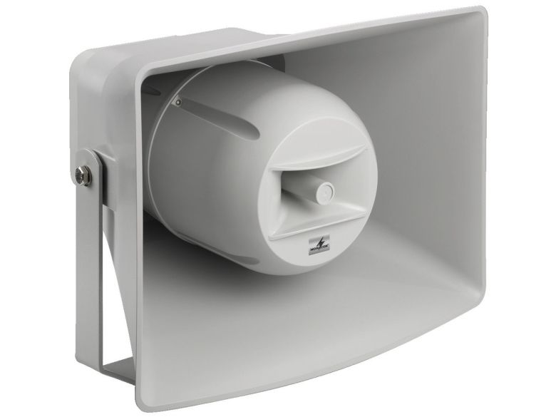 The music horns from MONACOR are the state-of-the-art solution in order to use the full range of a horn speaker with a clearly extended frequency range. The 2-way technology with a dynamic cone bass-midrange speaker and a horn tweeter allows for an increase in the sound quality and permits to radiate the keynotes of voices and instruments which cannot be achieved by conventional horn speakers. The music horns are a perfect solution whenever an optimum voice volume and/or a more complete music transmission is required.
