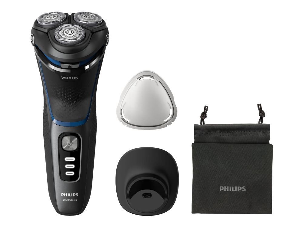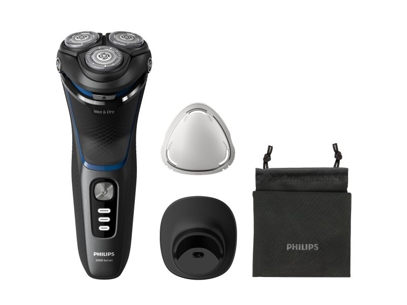 The Philips 3000 Series S3344 shaver offers a seamless and comfortable shaving experience. Designed for both wet and dry use, it caters to all preferences, ensuring maximum convenience. The shaver is equipped with 5D Pivot & Flex heads, PowerCut blades, and SkinProtect technology, which work together to provide a close yet gentle shave, protecting the skin from irritation. Its cordless operation, powered by a lithium-ion battery, delivers 60 minutes of shaving time on just a 1-hour charge, complemented by a quick charge feature for those last-minute grooming needs. The package includes a charging stand, protection cap, travel pouch, and USB cable, making it the perfect grooming companion, whether at home or on-the-go. With its fully washable design, maintenance is a breeze, ensuring hygiene and durability. The Philips 3000 Series S3344 is an essential tool for anyone looking to elevate their grooming routine.
