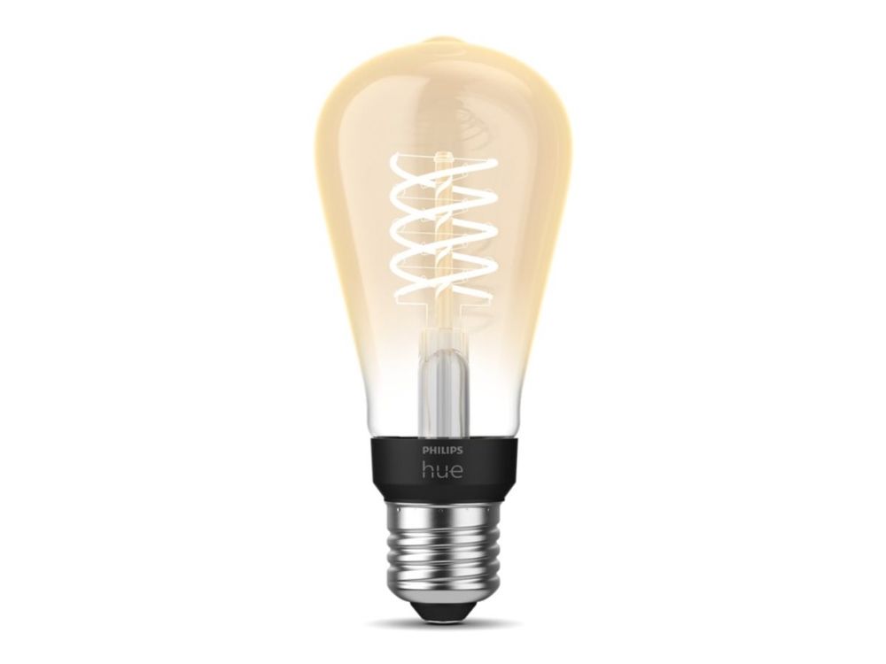 Easy smart lighting With an elongated design and vintage feel, this Bluetooth-capable LED Edison bulb featuring a coiled filament can make a statement in any room. Vintage in style but still modern, Filament bulbs can do everything other smart bulbs can do, including dimming and brightening.Philips ST64 Edison – E27 smart bulb. Type: Smart bulb, Interface: Bluetooth/Zigbee, Product colour: Transparent. Mobile operating systems supported: Android, iOS. Energy efficiency class: G, Energy consumption per 1000 hours: 8 kWh, Power consumption (standby): 0.5 W. Width: 60 mm, Depth: 60 mm, Height: 135 mm. Package type: Box, Package width: 720 mm, Package depth: 720 mm