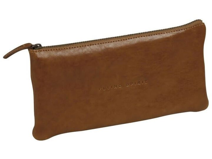 Flying Spirit pencil case black leather, cognac 22x11cm