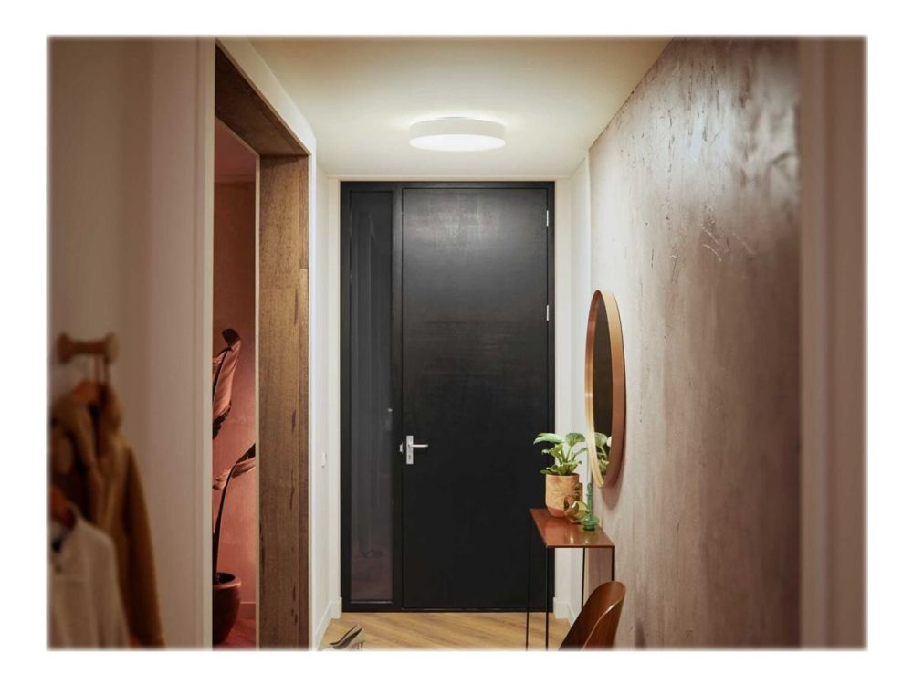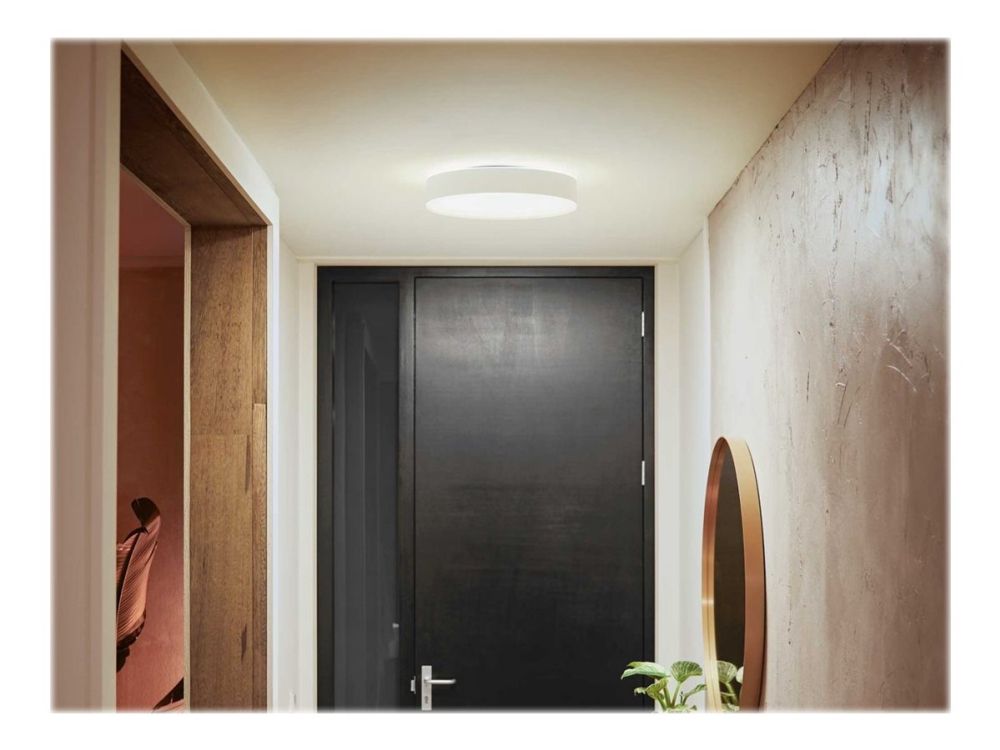 Easy smart lighting Make a statement in any room with the contemporary design of the medium Infuse ceiling light in white. Cast a subtle glow against the ceiling while shining powerful light downwards – in any shade of white or coloured light.Philips Hue White and colour ambience Infuse medium ceiling lamp. Type: Smart ceiling light, Interface: Bluetooth, Product colour: White. Energy efficiency class: G, Input voltage: 50–60 Hz, Bulb voltage: LED. Width: 381 mm, Depth: 381 mm, Height: 86 mm. Package width: 437 mm, Package depth: 457 mm, Package height: 100 mm. Quantity per pack: 1 pc(s)